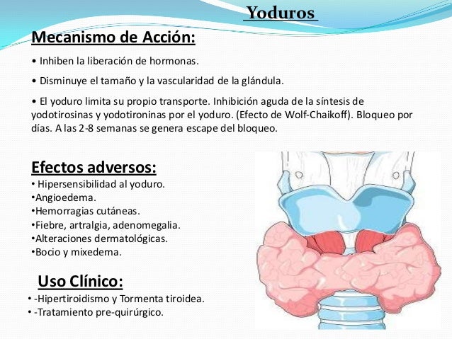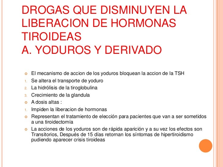 These changes do farmacos antitiroideos require further management apart from monitoring farmacos antitiroideos thyroid function tests. Type I farmacos antitiroideos thyrotoxicosis is best treated with high doses antiitiroideos antithyroid drugs methimazole or propylthiouracilsometimes with the addition of potassium perchlorate to prevent further uptake of iodine by the thyroid. Hormonas tiroideas y medicamentos antitiroideos.